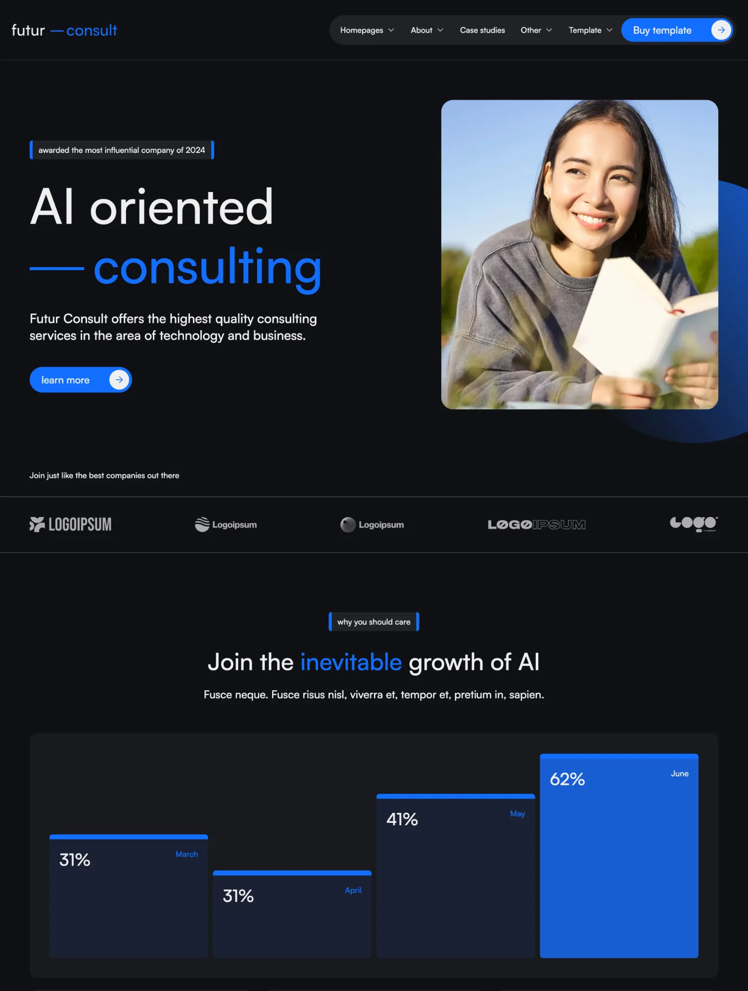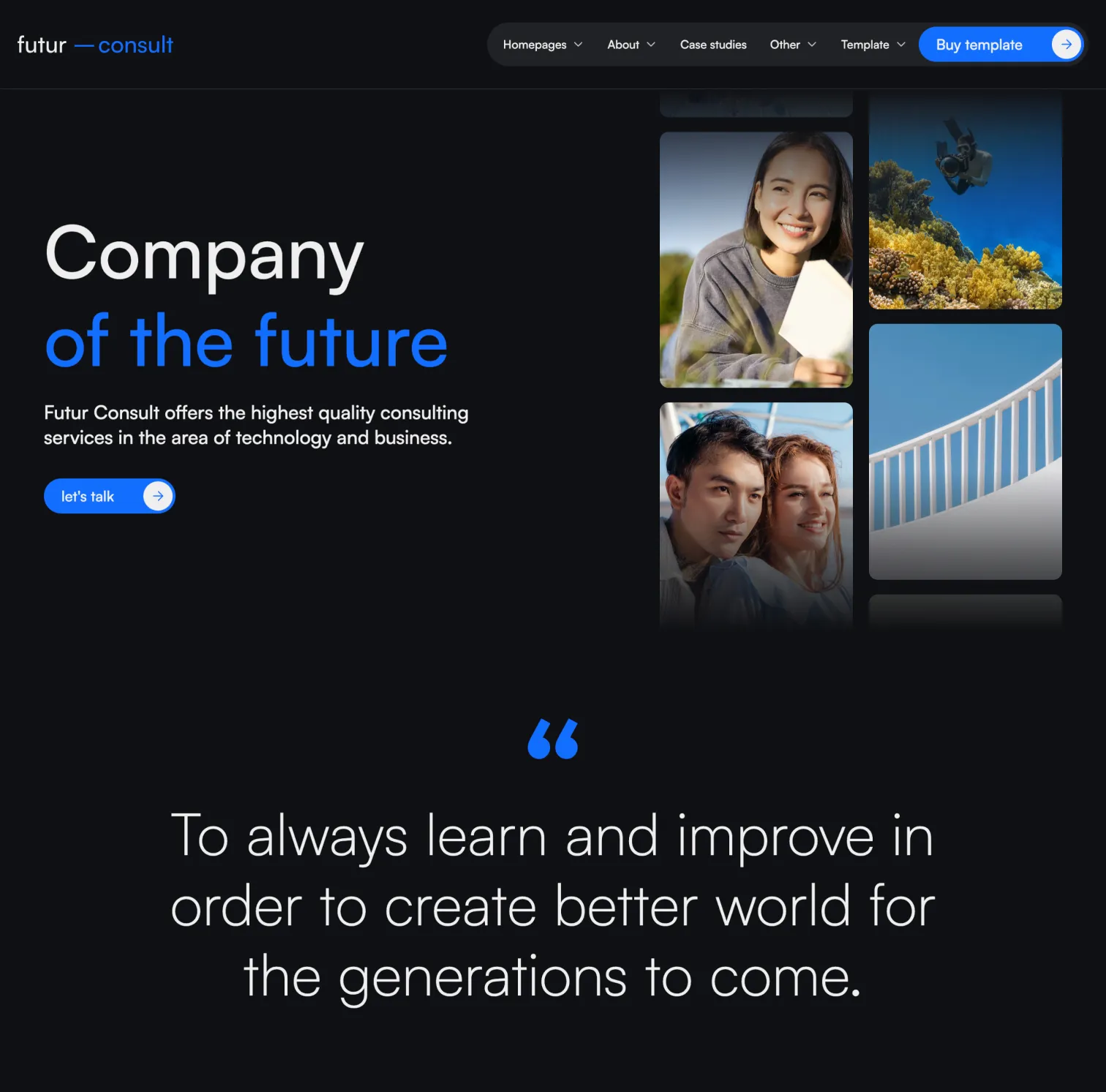 Yes, we know... it's easy to say it, but that's the fact. We did put a lot of thought into the template. Futur Consult was designed by an award-winning designer. Layouts you will find in our template are custom made to fit the industry after carefully made research.